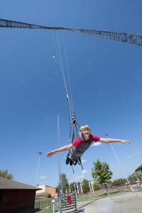 - The Skycoaster, a 100-foot-tall super swing, offers a fascinating ride which combines the elements of skydiving and hang-gliding. After you are harnessed in the Skycoaster, you will be pulled up 100 feet in the air, this gives you the chance to see picturesque views of the beautiful landscape of Branson. The Skycoaster can seat up to 3 riders at a time. When you hear “3-2-1 Fly”, you’ll feel a thrilling motion like no other as you pull the ripcord to start your 70-mph swinging adventure.