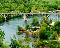 722 miles long, the White River starts in the Boston Mountains in northwest Arkansas in the Ozark-St. Francis National Forest, just south of Fayetteville, and flows through both Arkansas and Missouri. Once the river reaches Branson, Missouri, it becomes Lake Taneycomo (short for Taney County Missouri) and is held back by the Powersite Dam near Forsyth, MO. The Powersite Dam was the very first dam built along the White River in 1913, and the flow stems from Table Rock Lake. Downstream, it flows into Bull Shoals Lake and back into Arkansas, and from there, the White River meanders towards the mouth of the Mississippi river. More than 20,000 cubic feet per second of water is carried by the White River. There are 8 dams built along the White River; 2 of these dams are in Missouri, and the remaining 6 are located in Arkansas.